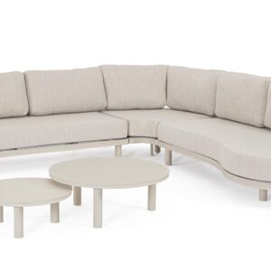 STRUTTURA IN ALLUMINIO VERNICIATO A POLVERE (POLIESTERE). CUSCINI SEDUTA E SCHIENALE SFODERABILI IN TESSUTO IDROREPELLENTE OLEFIN (100% POLIPROPILENE). PIEDINI REGOLABILI. GAMBE ANGOLARE E TAVOLINO (VITERIA IN ACCIAIO INOSSIDABILE) DA ASSEMBLARE.